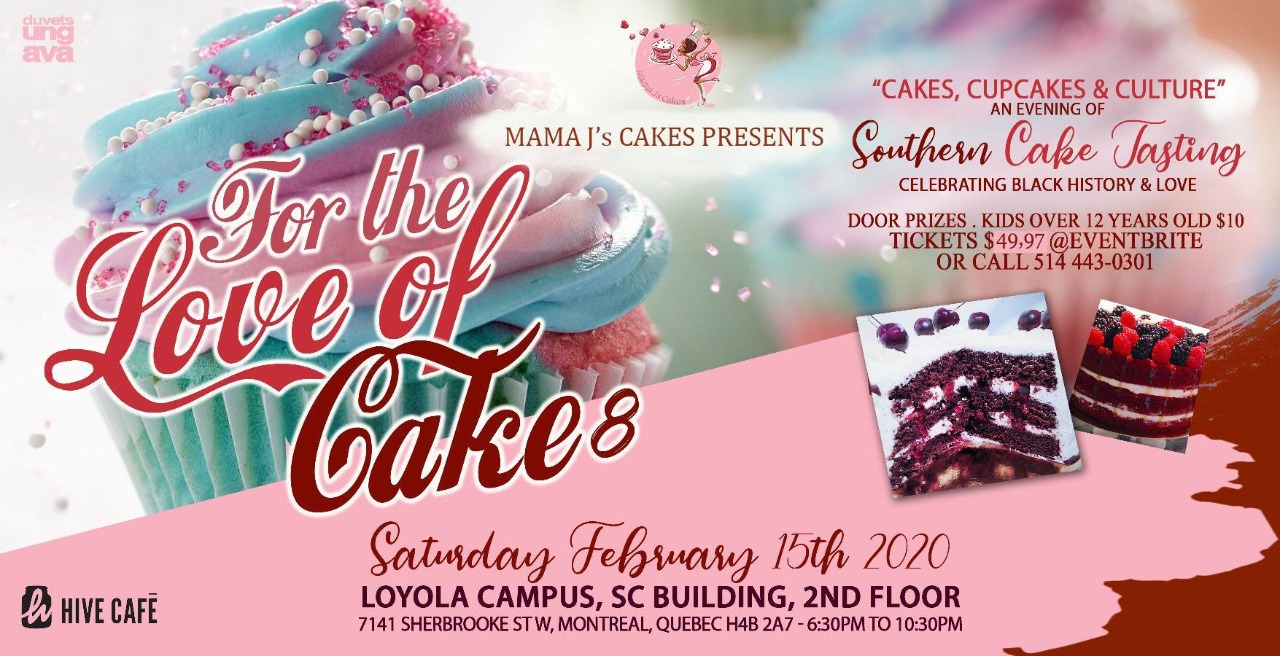 A special thank you to our community partners – The Eva R Gsum Foundation, Les Duvets Ungava, Caribbean Curry House, Salon Andre Scoon, Typhoon Lounge, Hits 94.7, and Mariposa. A special thank you to Montreal Community Contact, CKUT, Radio Centre Ville FM 102.3 and CJLO for their help in promoting Mama J’s Cakes ͞For The Love of Cake. See you at the next event